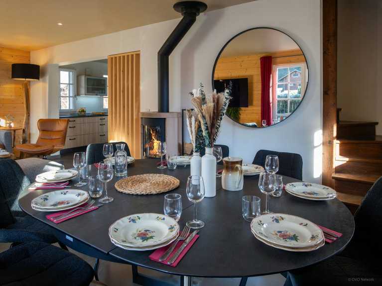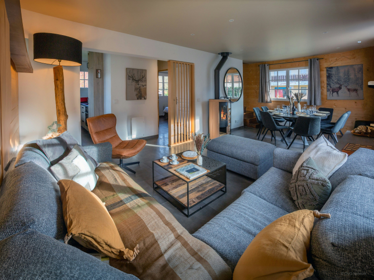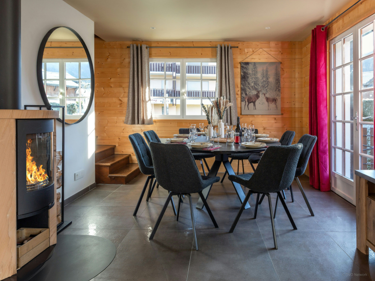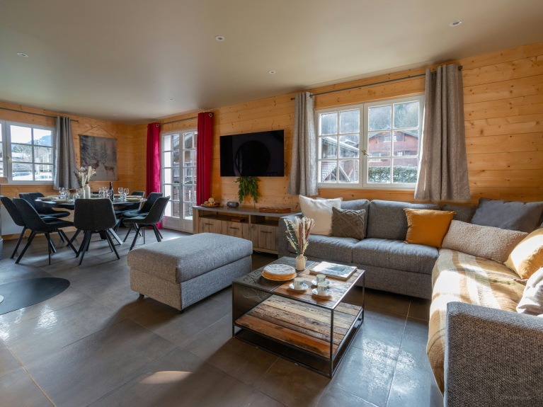 Das Chalet ist von einem großen, gesicherten Garten umgeben, der sich rund um das Grundstück erstreckt und in dem sich die Kinder austoben können. Hier finden Sie auch eine zweite Terrasse mit einem Tisch für acht Personen, der sich perfekt für Mahlzeiten im Freien eignet.