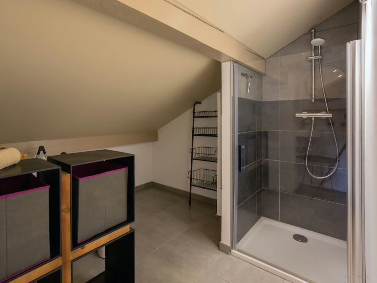 Das Anwesen umfasst vier Zimmer, die sich über seine drei Etagen verteilen. Es handelt sich um ein Doppelzimmer mit eigenem Duschbad, ein weiteres mit Schreibtisch und Fernseher sowie ein drittes Doppelzimmer mit einem zusätzlichen Einzelbett und einem Waschbecken. Schließlich gibt es unter dem Dach noch einen Schlafsaal mit drei Einzelbetten. Die Zimmer im obersten Stockwerk teilen sich ein großes Duschbad und eine separate Toilette. Die erste Etage verfügt über eine separate Toilette. Im Erdgeschoss befindet sich ein Duschraum mit Toilette.