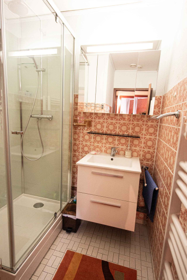 Badezimmer: Dusche, Waschbecken - separate Toilette.