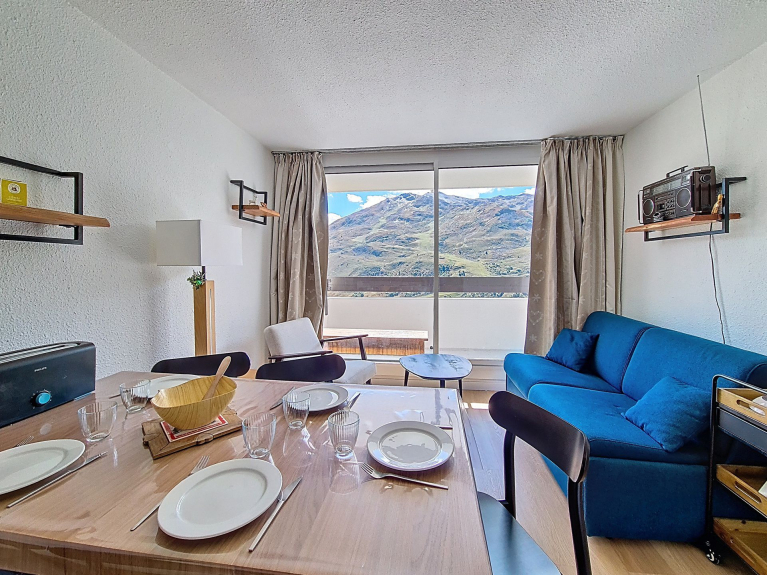 Das Brelin-Gebäude überragt den Ort Les Menuires und liegt oberhalb des Stadtteils La Croisette, der über öffentliche Aufzüge, die rund um die Uhr geöffnet sind, erreicht werden kann.
