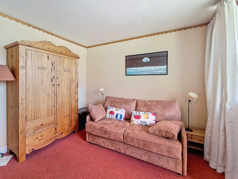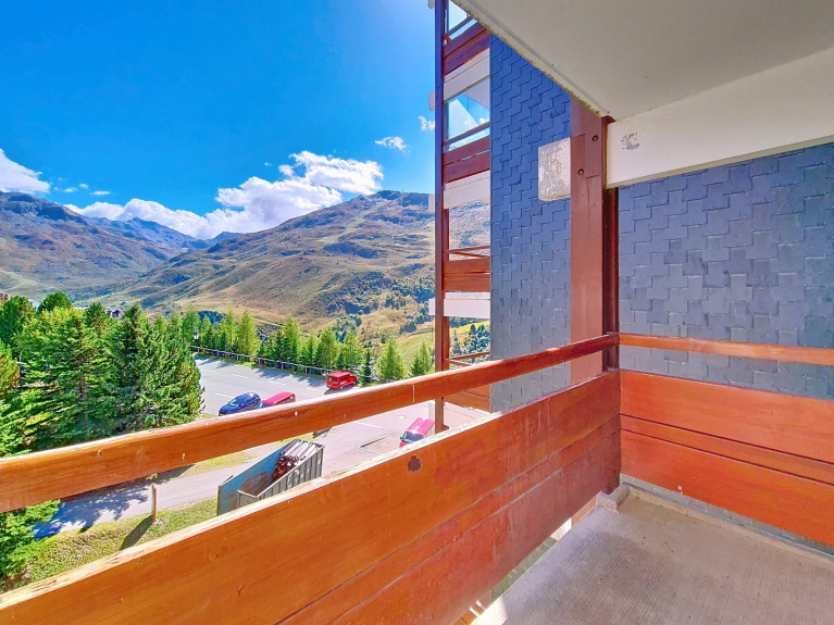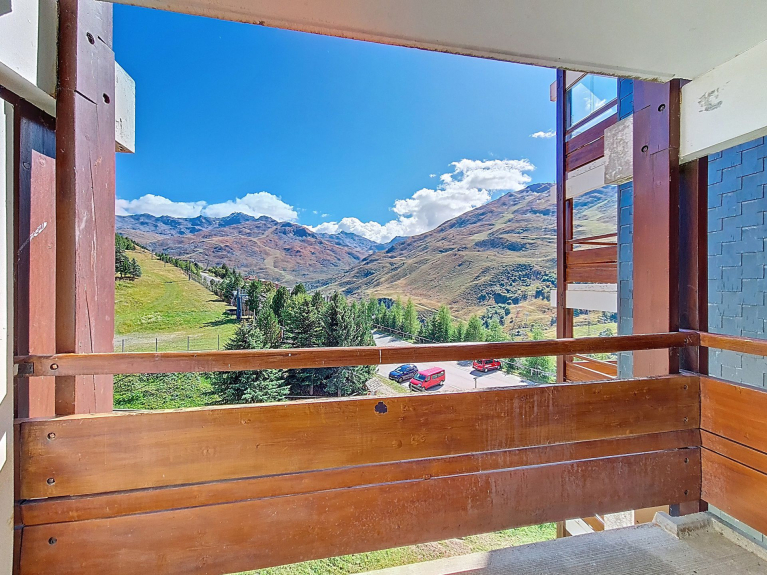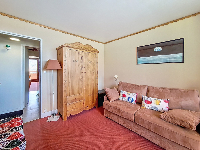 2-Zimmer-Wohnung von 36m² für 6 Personen mit einem nach Süden ausgerichteten Balkon, Blick auf die Pisten. Sie befindet sich im 5. Stock mit Aufzug.