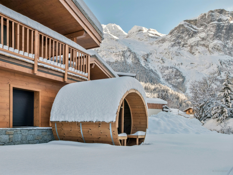 Und schließlich sind Ihnen angenehme Momente in der wohltuenden Wärme der Fasssauna des Chalet Rongbuk sicher. Eine überdachte Garage und ein Stellplatz im Freien vervollständigen die Ausstattung dieses raffinierten Chalets, das Ihr persönliches Refugium im Massif de la Vanoise ist.