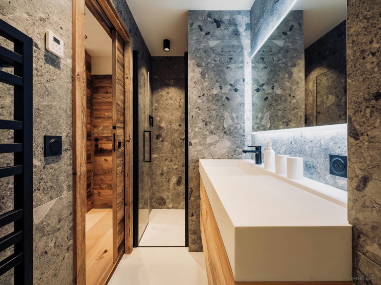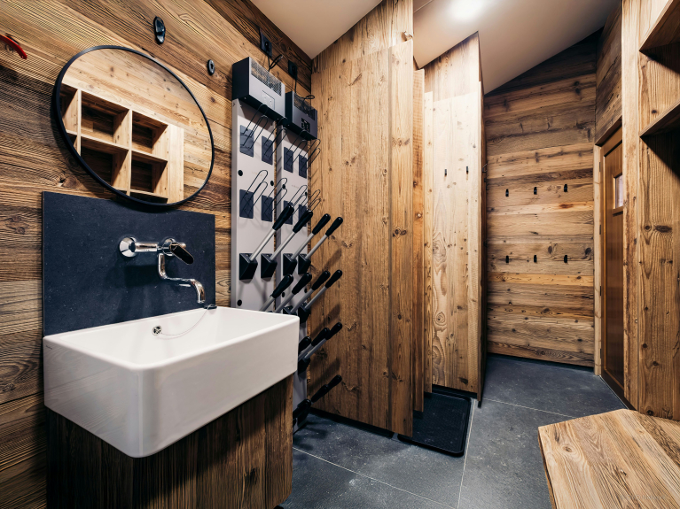 Ein separater Skiraum mit Waschbecken, beheiztem Schuhtrockner, Waschmaschine und Trockner sorgt für Ihren Komfort, sobald Sie von den Pisten zurückkehren.
