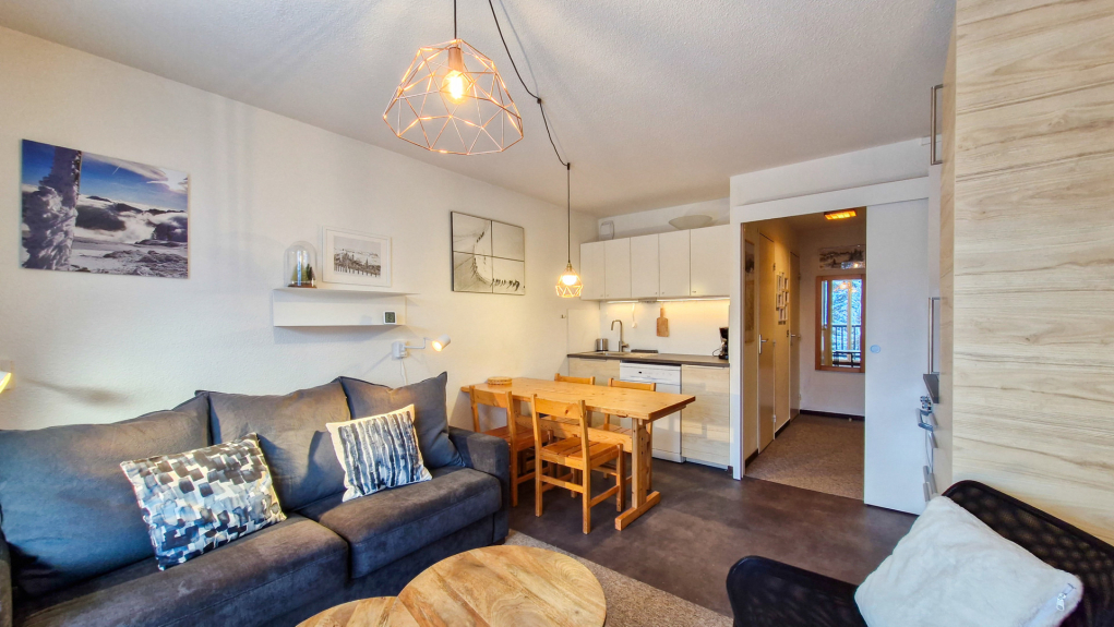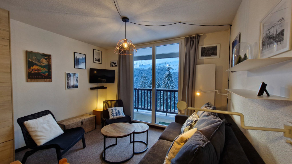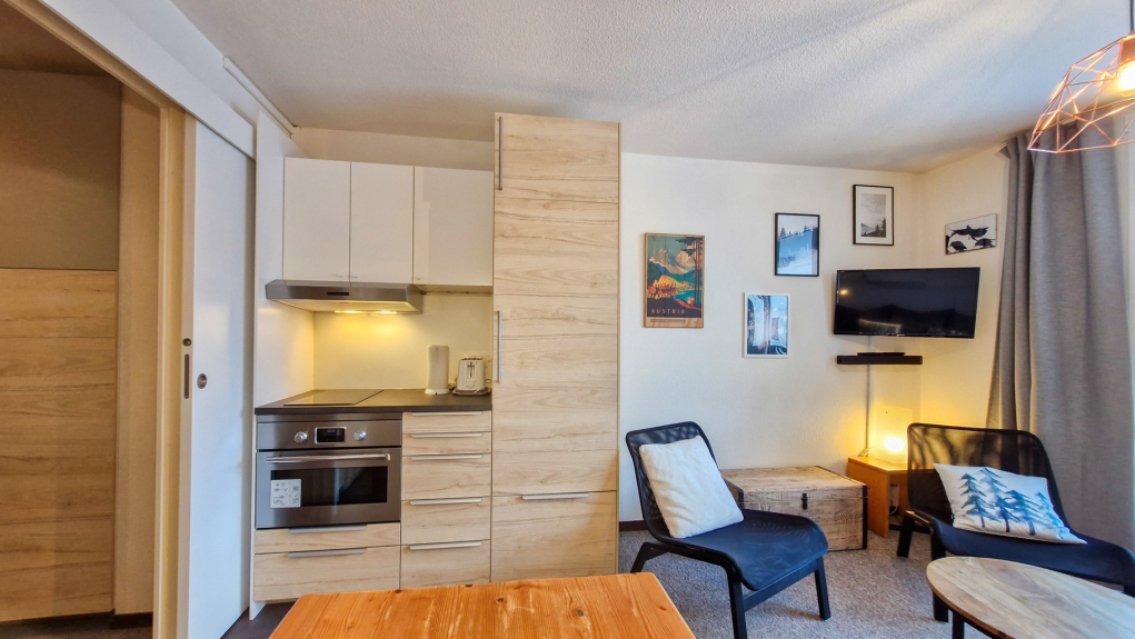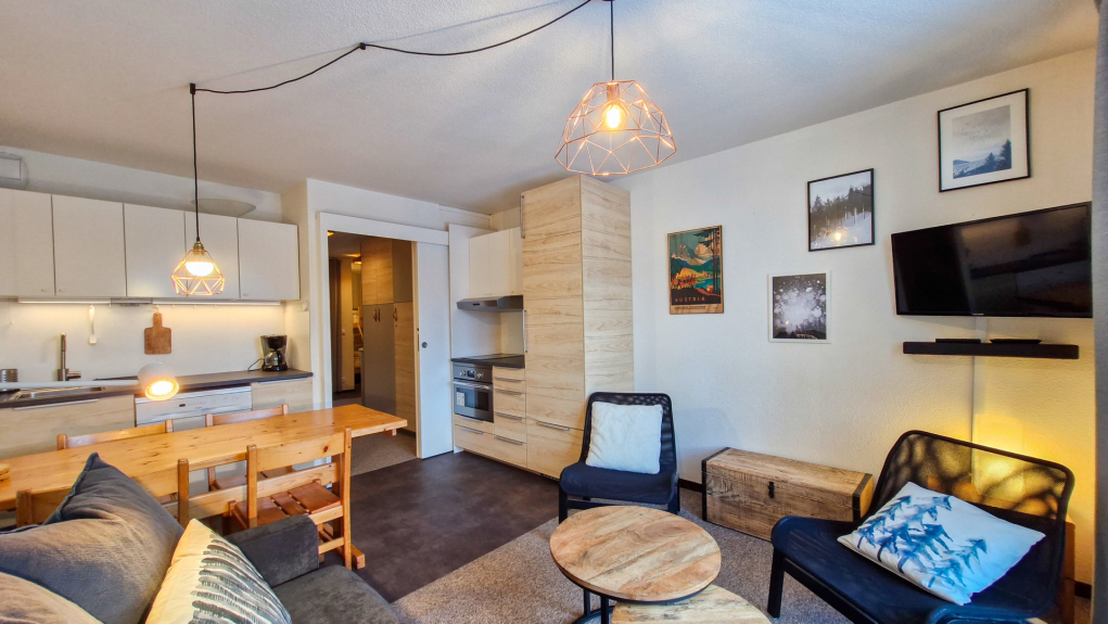 2-Zimmer-Wohnung + Komfortkabine 40m2 im 1. Stock Südbalkon, Panoramablick auf das Skigebiet.