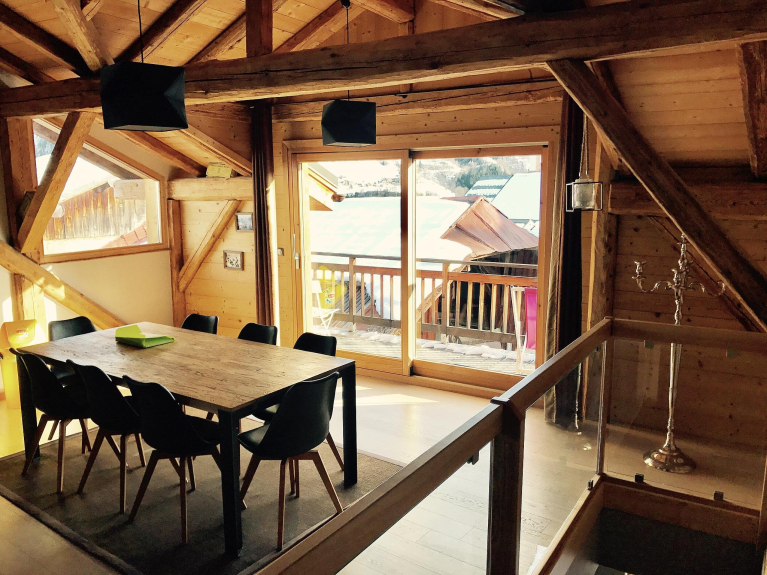 Zurück im Chalet genießen Sie die Ruhe des Dorfes, die Terrasse und den Whirlpool, um sich am Ende des Tages zu entspannen.