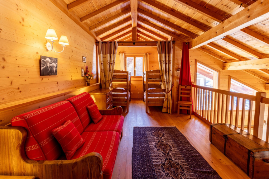 Großes Zwischengeschoss mit Bergecke 4 Einzelbetten und bequemes Schlafsofa (bed-express 140x190) mit Badezimmer und WC.