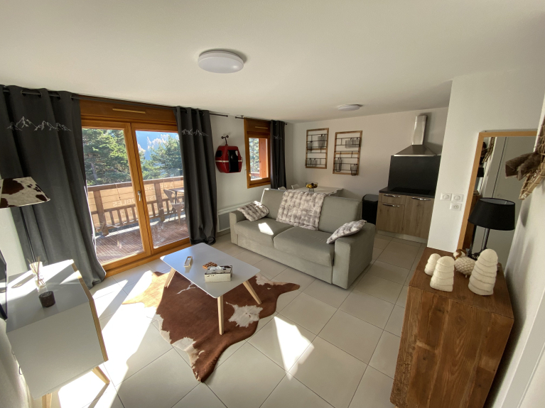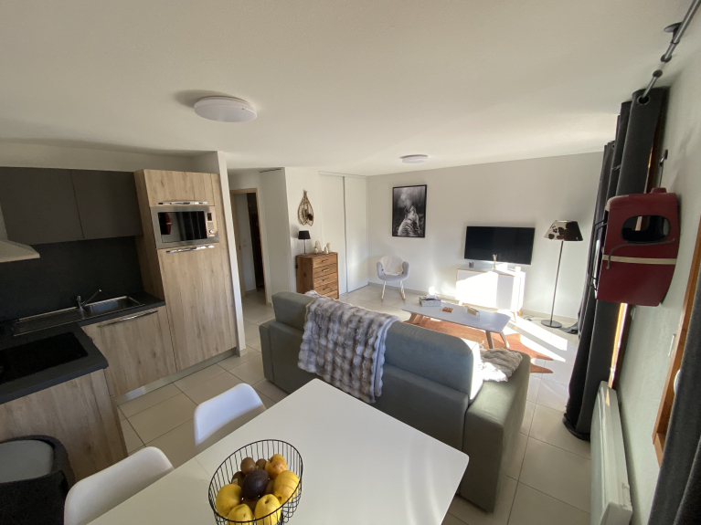 35 m2 große Wohnung mit Balkon im dritten Stock mit Südostausrichtung und freiem Blick auf die Berge.