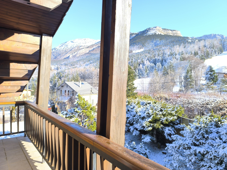 Großes Chalet auf 2 Etagen. 2 Terrassen (Nordost und Süd) und 2 Balkone (Ost) mit einem atemberaubenden Blick auf die Berge des Vercors. Gut ausgestattetes Chalet mit allen Annehmlichkeiten und einem Kamin. Großer privater Garten (1000m²) mit Gartenmöbeln. 14 Schlafplätze in 6 Schlafzimmern, davon ein Hauptschlafzimmer und ein Durchgangszimmer.