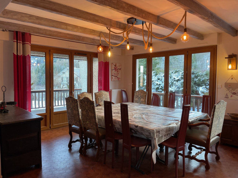 Sehr gute Lage in einer ruhigen Gegend am Fuße des Gerbiergebirges und der Schneeschuhwanderwege, 5 Autominuten vom Dorfzentrum und vom Shuttlebus zu den Skipisten entfernt. Rodeln ist direkt vor dem Chalet möglich.