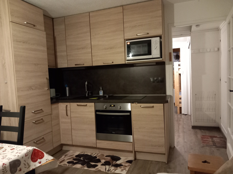 The apartment has been refurbished. The kitchen is equipped with a dishwasher, an induction cooker, an oven, a large fridge and a small freezer, a microwave oven. There is a raclette set, a pierrade, a fondue set, a waffle iron and a crepe maker.
