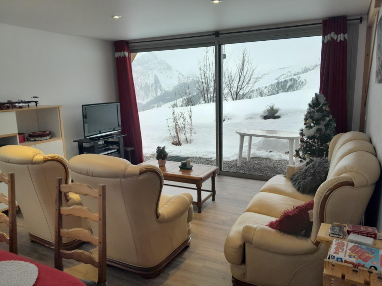 Ground floor apartment in an individual chalet ( built in 2018), quiet residential area with panoramic view of the mountains (facing the needles of d'arves).