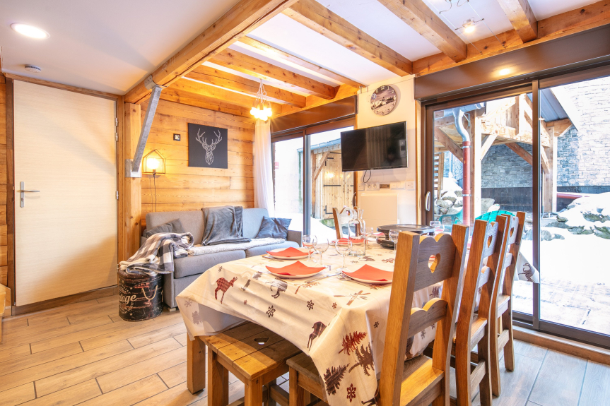 The chalet is fully equipped for 8 people: dishwasher, washing machine, TV, wifi, etc…