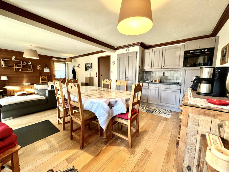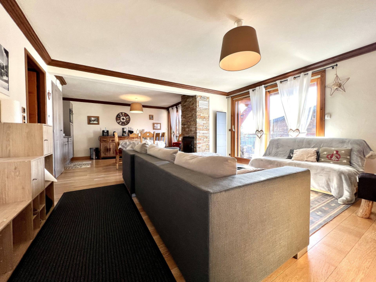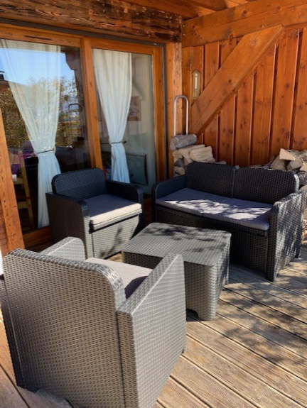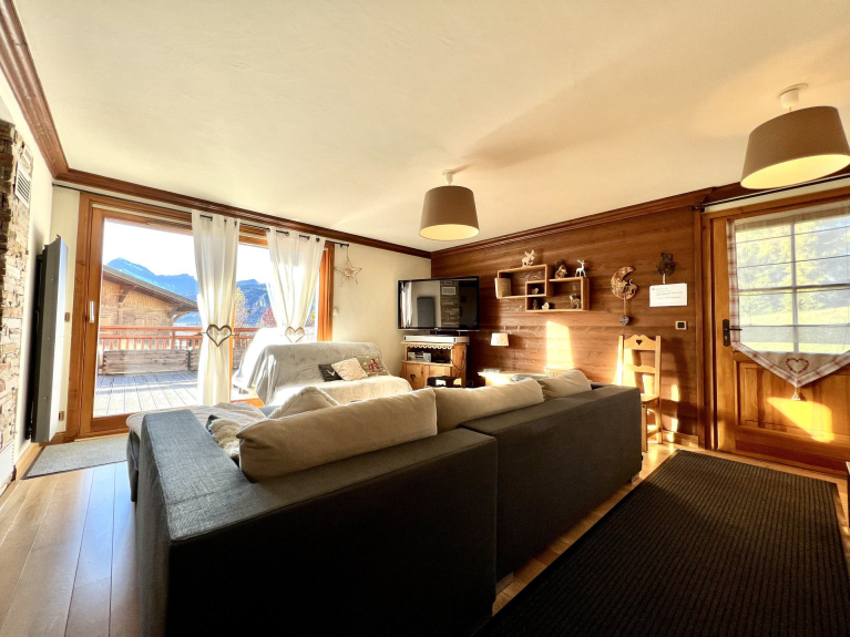 Apartment BOEFFARD. 4 rooms, 8 persons, 75 sqm, groundfloor, SOUTH/WEST exposure with a terrace of 49 sqm with JACUZZI, view on the Mont Charvin and the valley.