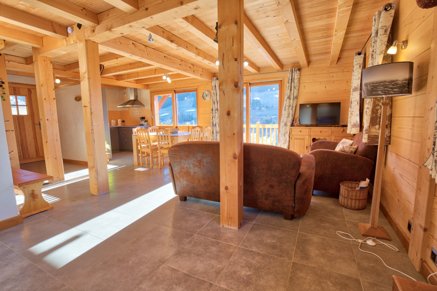 OUR ADVICE : A dream holiday in this cosy chalet facing SOUTH with a breathtaking open view. Good quality with new mountain style equipment. Space around the chalet for children to play.