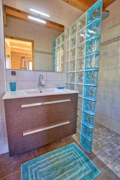 *ON THE 1ST FLOOR : 1 bedroom with 1 double bed (140x190) , 1 bedroom with 1 double bed (160x200), 1 bedroom with 2 single beds (2x90x200), mezzanine with a sofa bed for 1 people + 1 drawer bed for 1 person(2x90x190). Beds equiped with duvets. Access to a balcony facing SOUTH. Large bathroom with shower + washbasin. Separated WC.