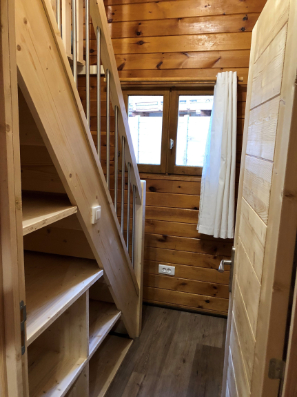 On the ground floor: a large living room/kitchen, a separate toilet and a room with shower and a double bed.