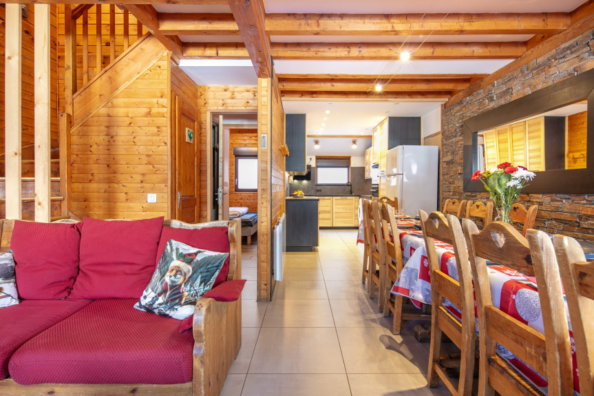 The chalet is fully equipped for 12 to 14 people: dishwasher, washing machine, TV, wifi, etc…