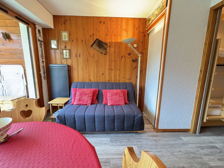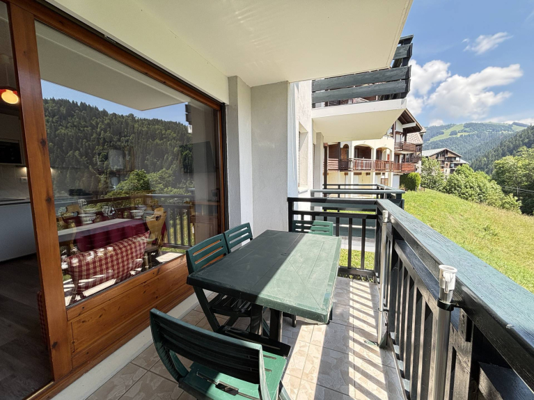 2 rooms, 4 persons, 26 sqm, groundfloor, SOUTH exposure with balcony, view on the Mont Charvin and the valley.