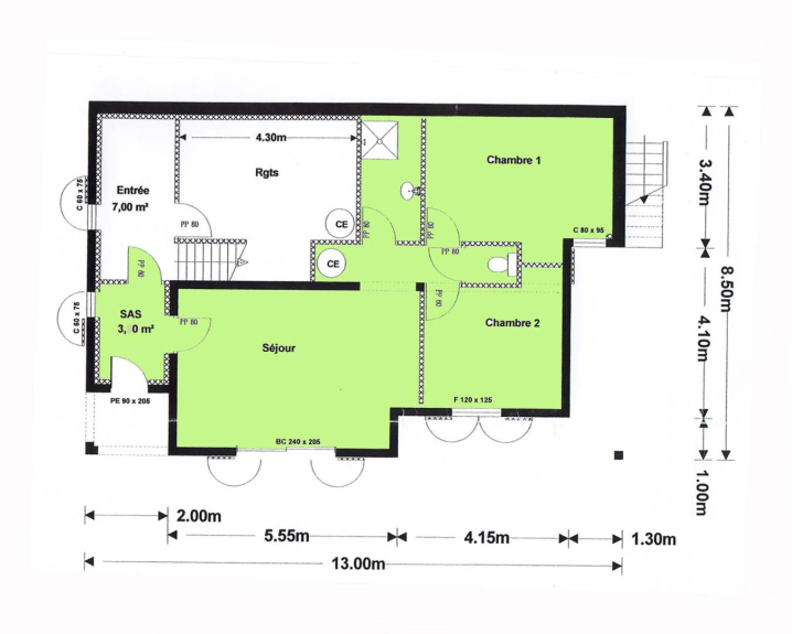 In addition to the two bedrooms there is a large living room, dining room and kitchen which opens out through a double glazed window onto a large stone terrace of 60m².