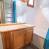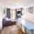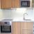 - Kitchen open to the living room with dishwasher, electric hob, fridge and microwave.