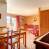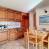 Built-in kitchen with 4 ceramic hobs, hood, oven, refrigerator and dishwasher, kettle, toaster and coffee maker.