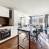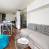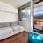 Separate kitchen with induction cooker, refrigerator, oven, microwave, dishwasher, kettle, toaster and coffee maker.