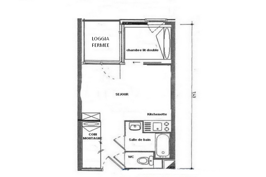 Apartment of 2 rooms (separated by a curtain) of 25 m² for 4 persons.