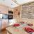 It has a south balcony (slopes view) on the living room side and a north balcony on the bedroom side (resort view).
