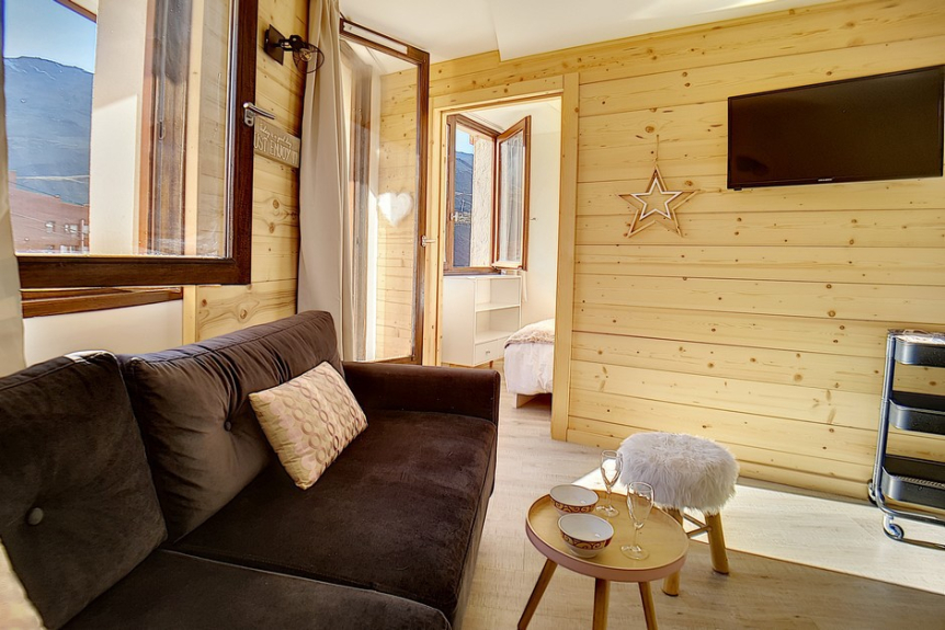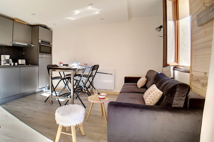 Very nice 2 room apartment, 26m², fully renovated in 2018, equipped for 4 people, located on the 1st floor with balcony facing South-West and view on mountain ranges and slopes.