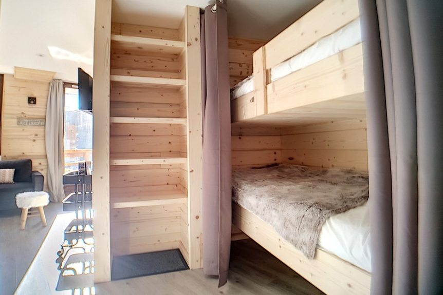 Mountain corner (separated from the living room by a curtain) : 2 bunk beds for 1 person.