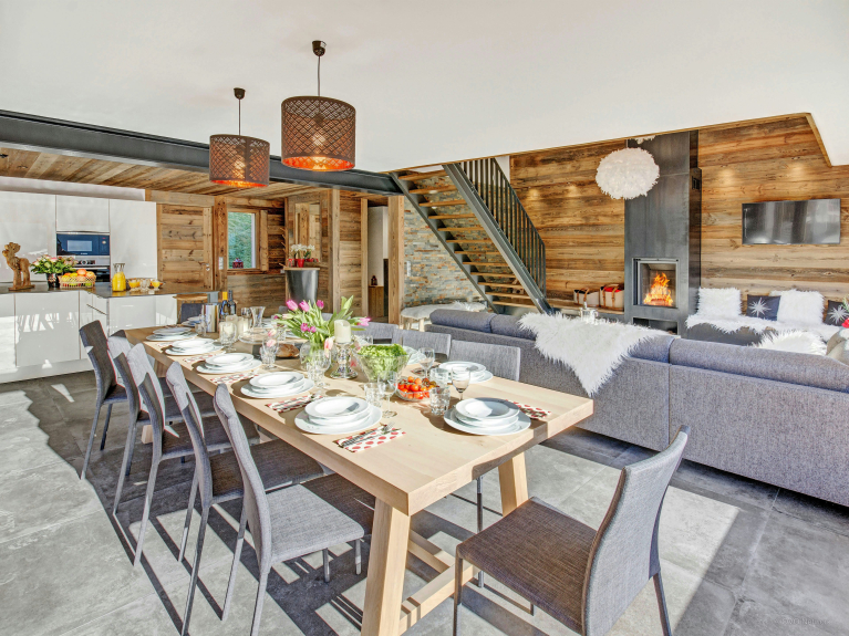 Just renovated, this large 5 star chalet is located in Le Grand Bornand, 300 m from the typical church, shops and restaurants, 300 m from the skibus stop and less than 1 km from the ski slopes. NOTE: cleaning, sheets and towels included.