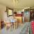 *KITCHEN open on the living room: electric hobs, fridge, microwave, dishwasher.