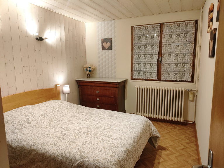 Spacious apartment on the ground floor. Two bedrooms and a lounge/dining room with a sofa bed can accommodate up to 6 people. In winter, the nearest ski resort is less than 3km away and the Espace Diamant ski area is less than 5km away. In summer, many walks are possible and the garden is accessible for a moment of games or relaxation.