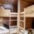 Cabin with window, separated from the entrance by a door: 2 x 2 single beds.