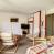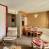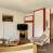 Kitchen equipped with 3 ceramic hobs, combi microwave oven, refrigerator, dishwasher, coffee maker, toaster and kettle.