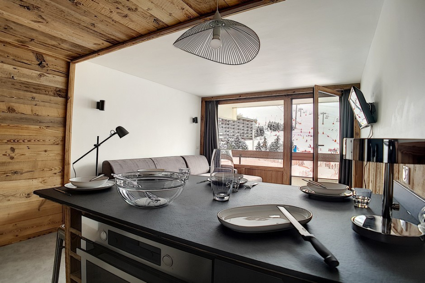 Apartment 2 rooms : 36 m² for 5 persons. located above the shopping mall, on the 2nd floor of a residence, close to the ski lifts and the ESF departure. The apartment has a large balcony facing South.