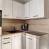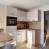 Kitchen equipped with 3 induction hotplates, fridge, combined microwave, dishwasher, coffee maker, toaster and kettle.