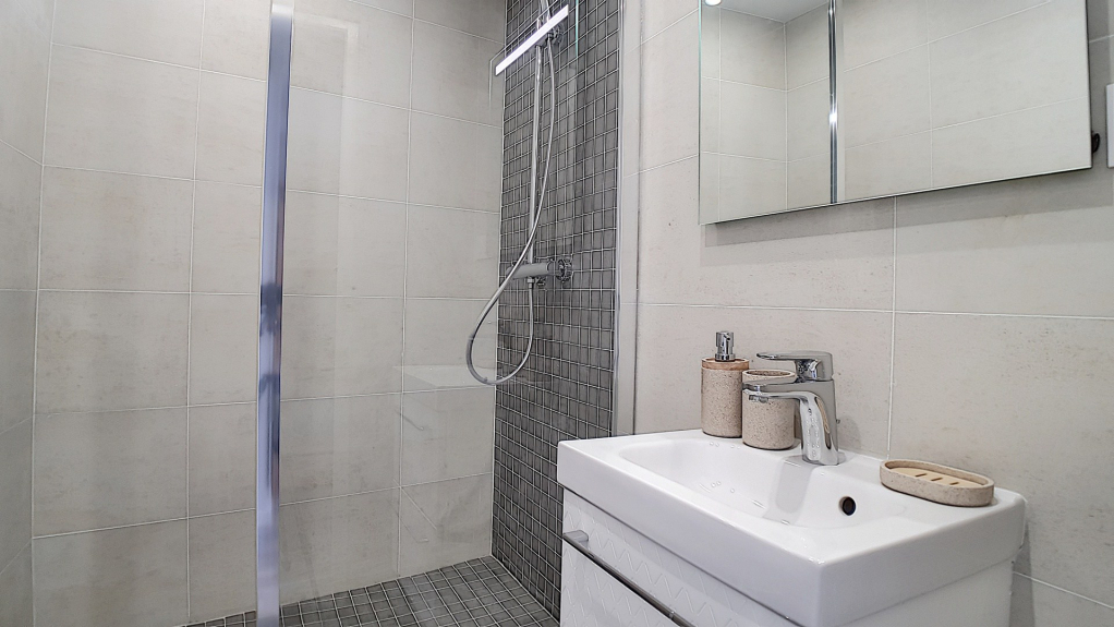 Mountain corner (in the entrance, separated from the living room by a sliding door) : 2 single bunk beds (80*190cm).