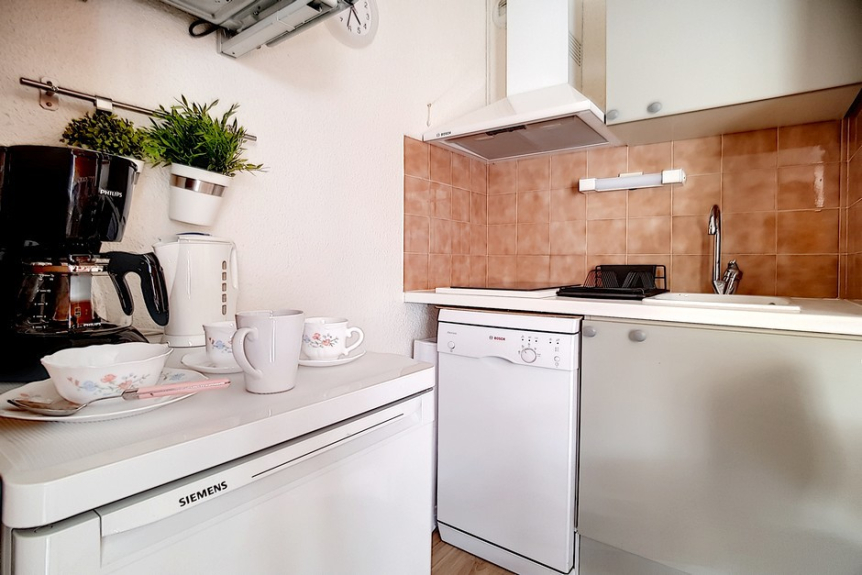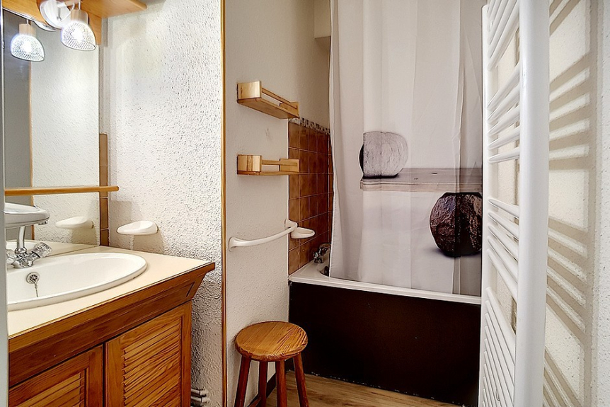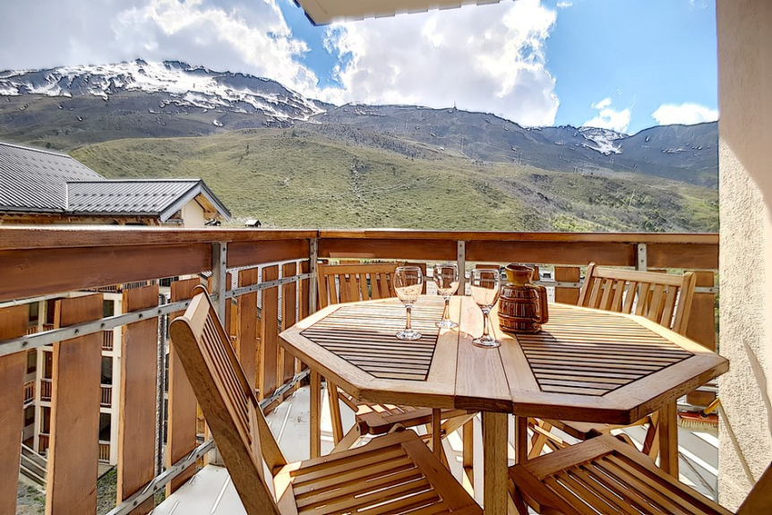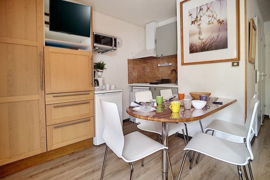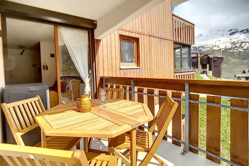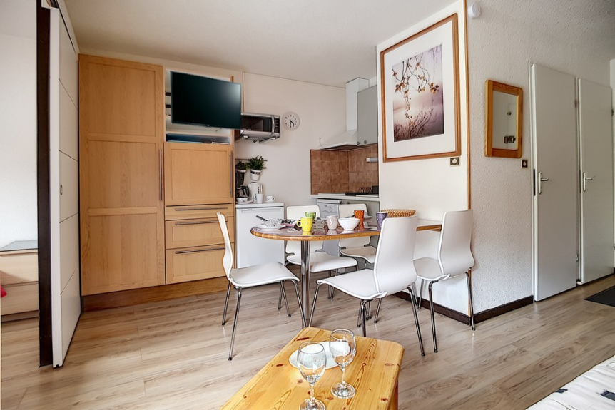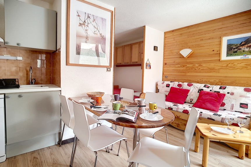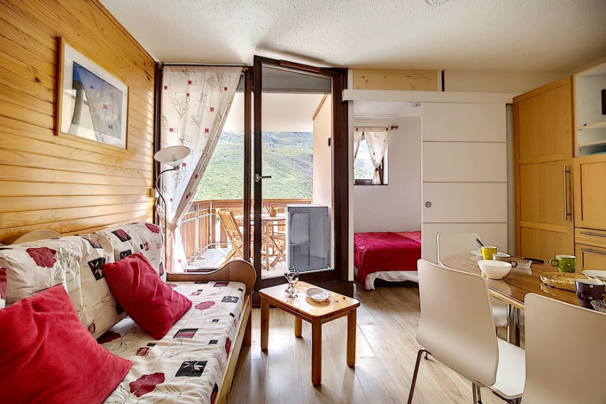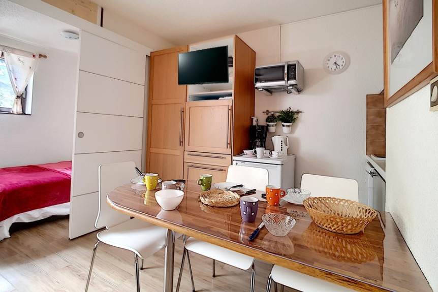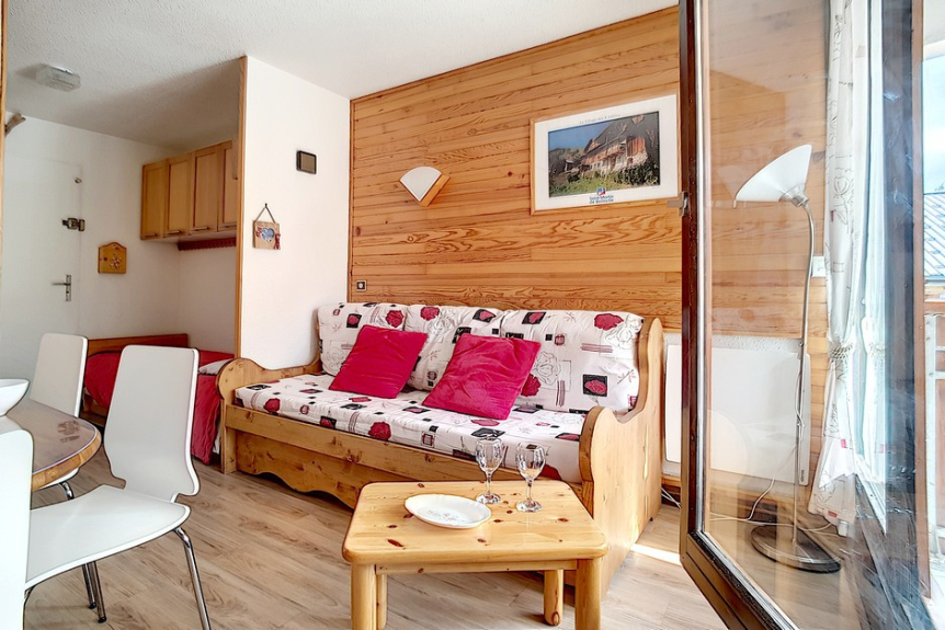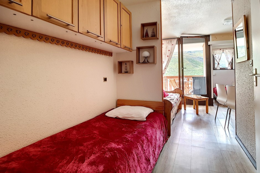 2 room apartment cabin of 24m2 for 4 people located on the 1st floor of the residence Ski et Soleil facing south west with a balcony.