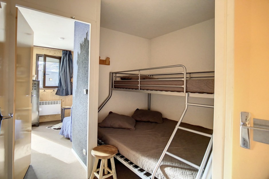 Mountain corner (in the entrance, separated from the living room by a door): 2 bunk beds: 1 person above and 1 bed 2 persons below.
