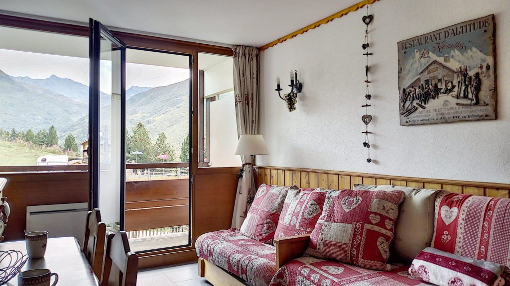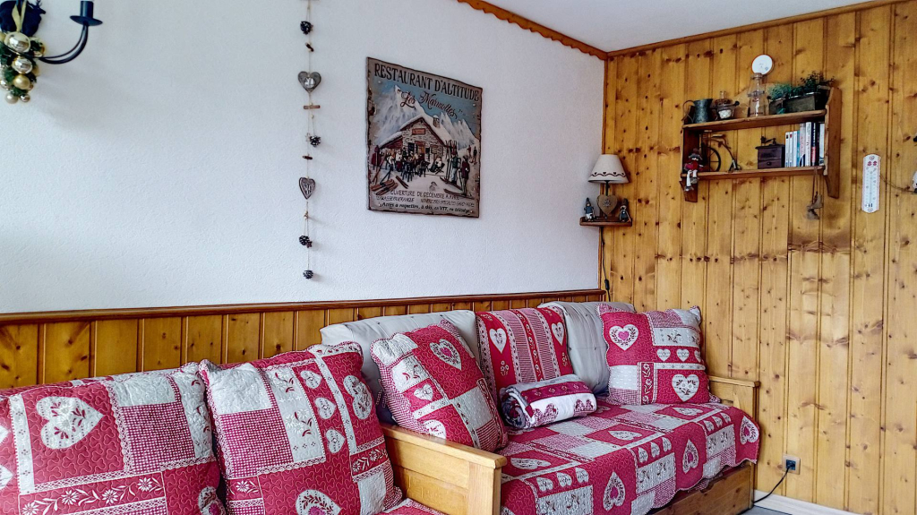 Living room : 1 sofa bed (120 cm) + 1 single bed. Equipped with a flat screen television.