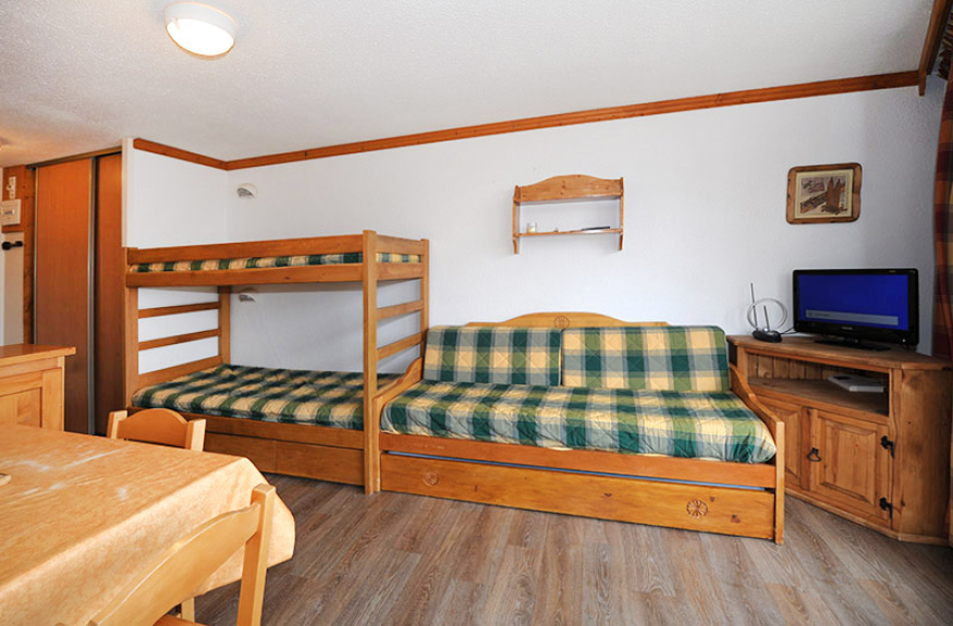 Living room : 1 sofa bed 1 person and 2 bunk beds 1 person. Equipped with a television.