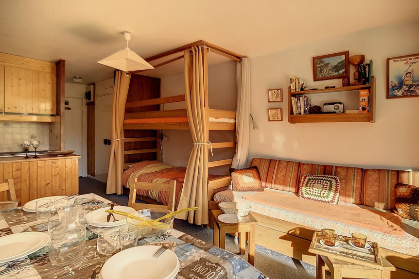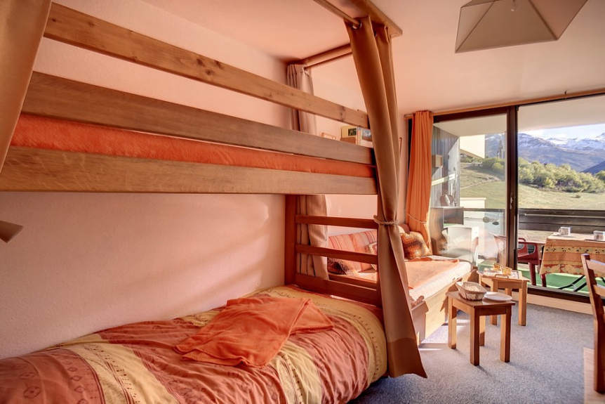Living room : 1 single bed and 2 bunk beds for 1 person. Equipped with a television.