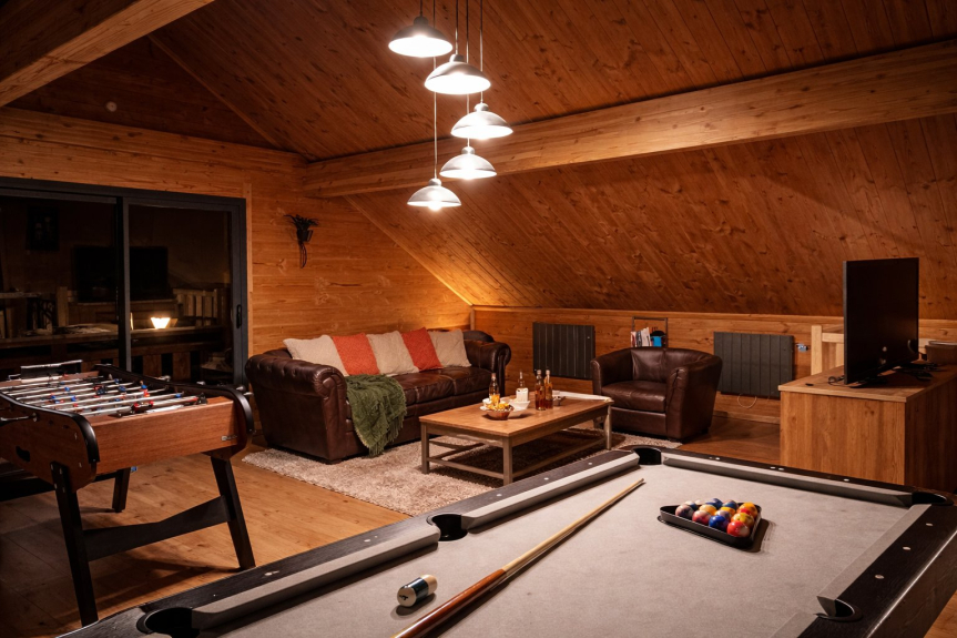 1 American billiard, 1 wifi speaker, 1 bar, board games...