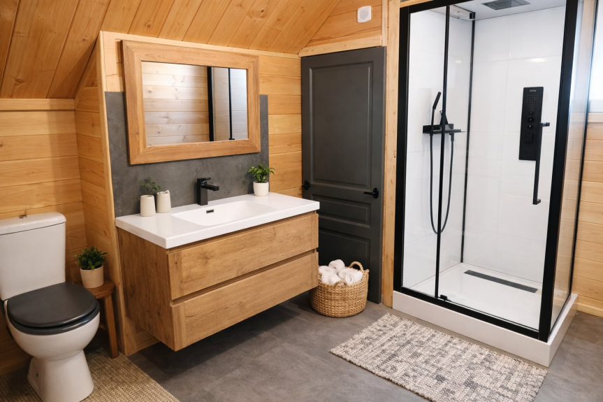 The chalet is equipped with two shower rooms, 1 on the ground floor and 1 on the first floor