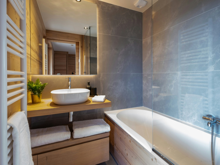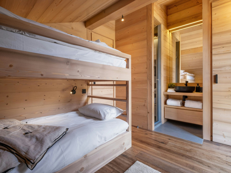 We think this beautifully decorated chalet is an excellent choice for two families, each of whom will enjoy their own privacy as the bedrooms are separate on the upper and lower floors. The ratio of bathroom to bedroom is ideal and will also suit a group of friends.