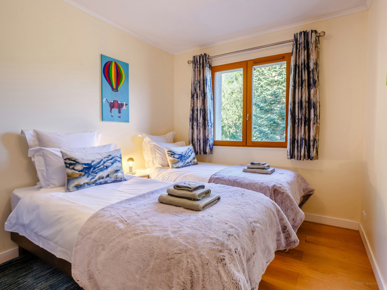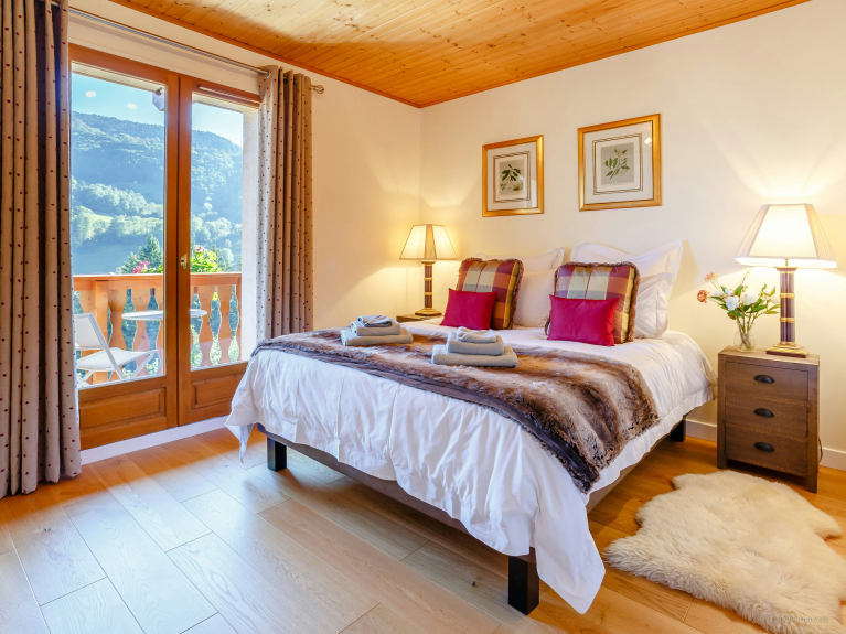 The chalet is incredibly large and bright, and two of the bedrooms open onto a sunny balcony.