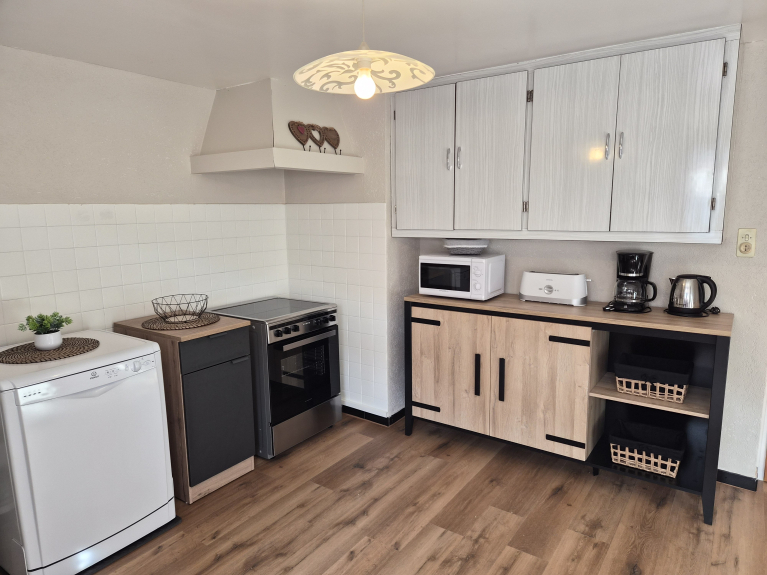 Large apartment with all comforts in a chalet with four bedrooms, kitchen, living/dining room.