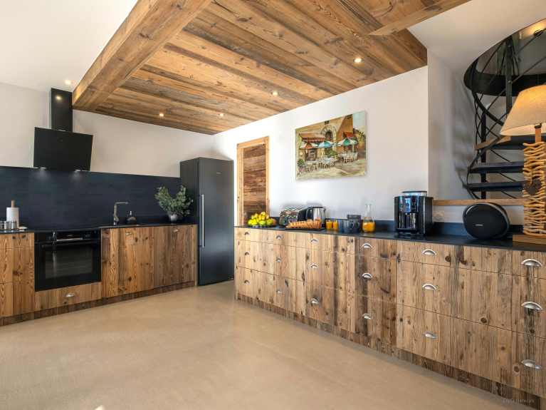 Unfortunately there is no garden available, but there is plenty of space on the balconies and terrace to enjoy the alpine air, eat, relax and play games. As the chalet is located in a dead end street, there is little traffic, making it a quiet and safe location.