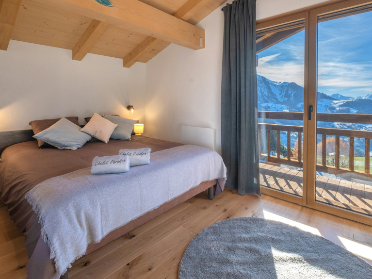 The Paralpin chalet, built on three floors, can accommodate 12 people in five master suites. It is located in a sumptuous setting, halfway between the charming village of Manigod and the resort of La Croix Fry, both 3.5 km from the door.